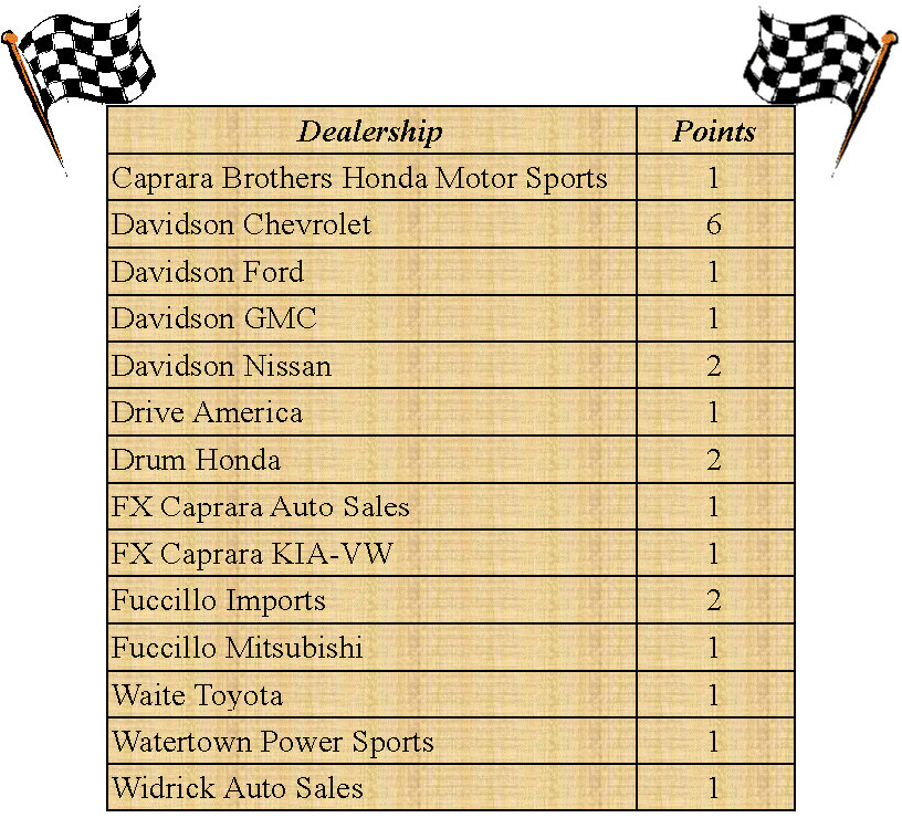 The chart will be updated, every Monday morning, to reflect the previous week's points. Thank you and let’s